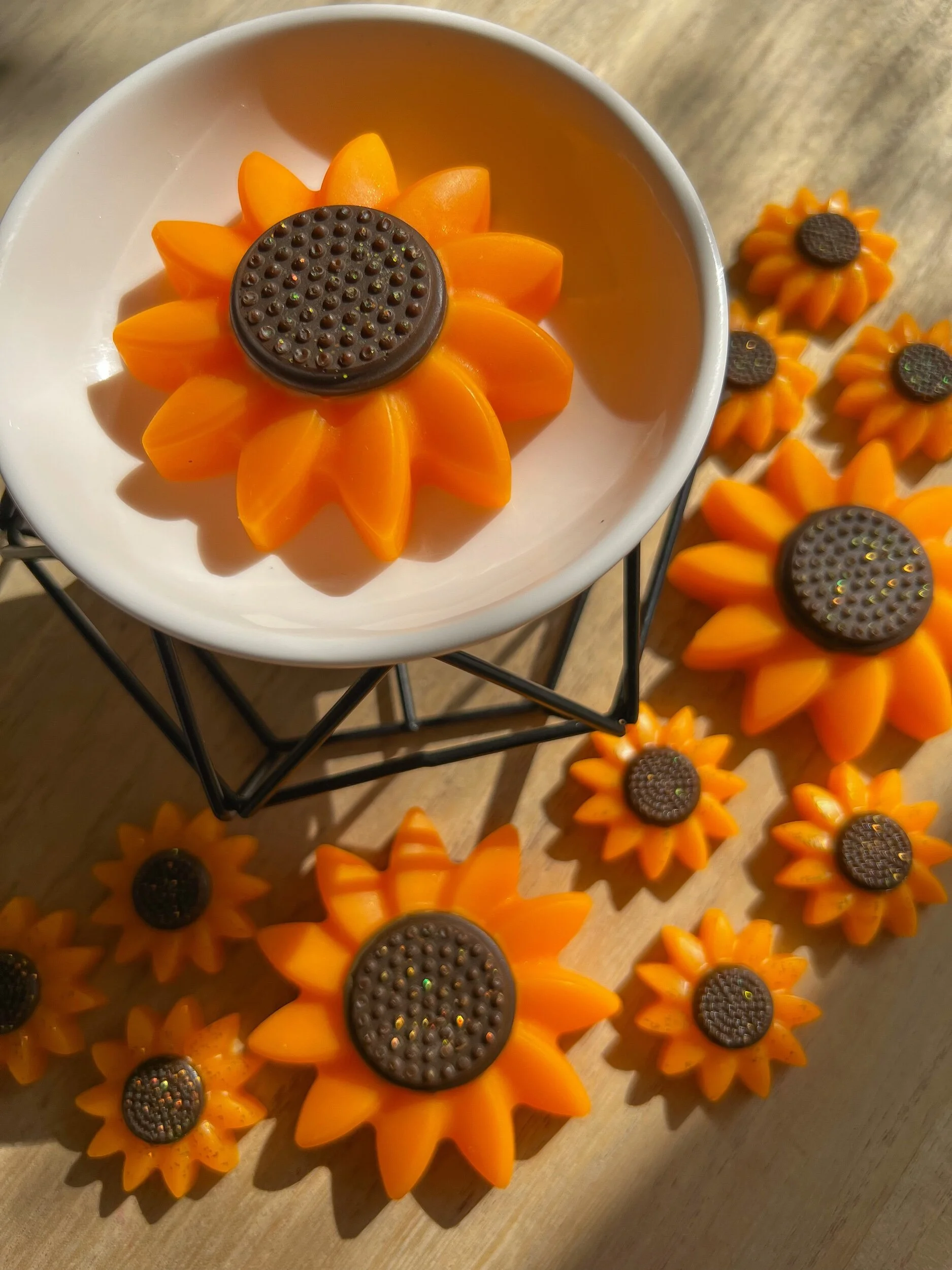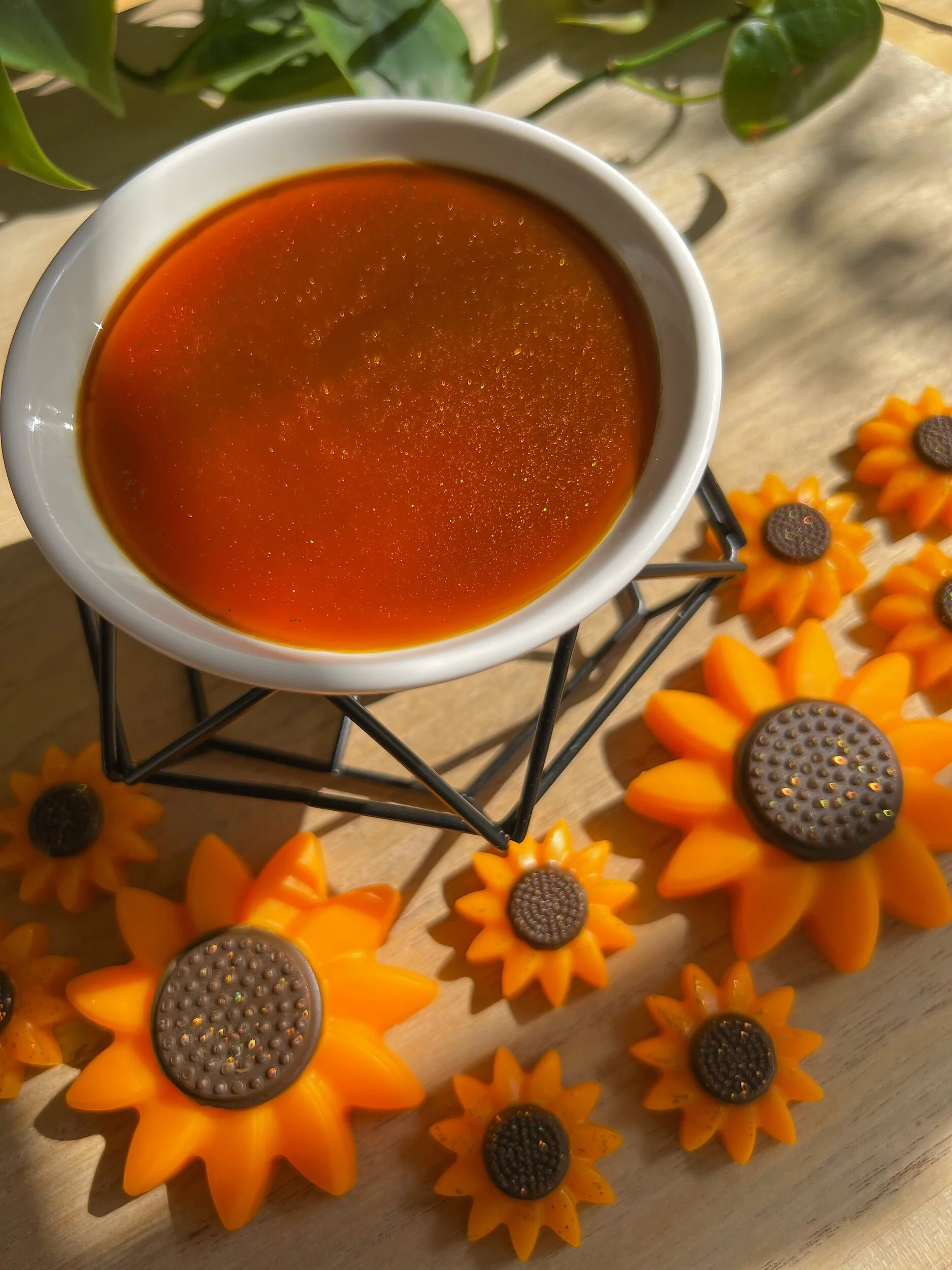 Our wax melts are made with a custom in-house blend of soy & beeswax. Using this all-natural wax blend has several benefits: