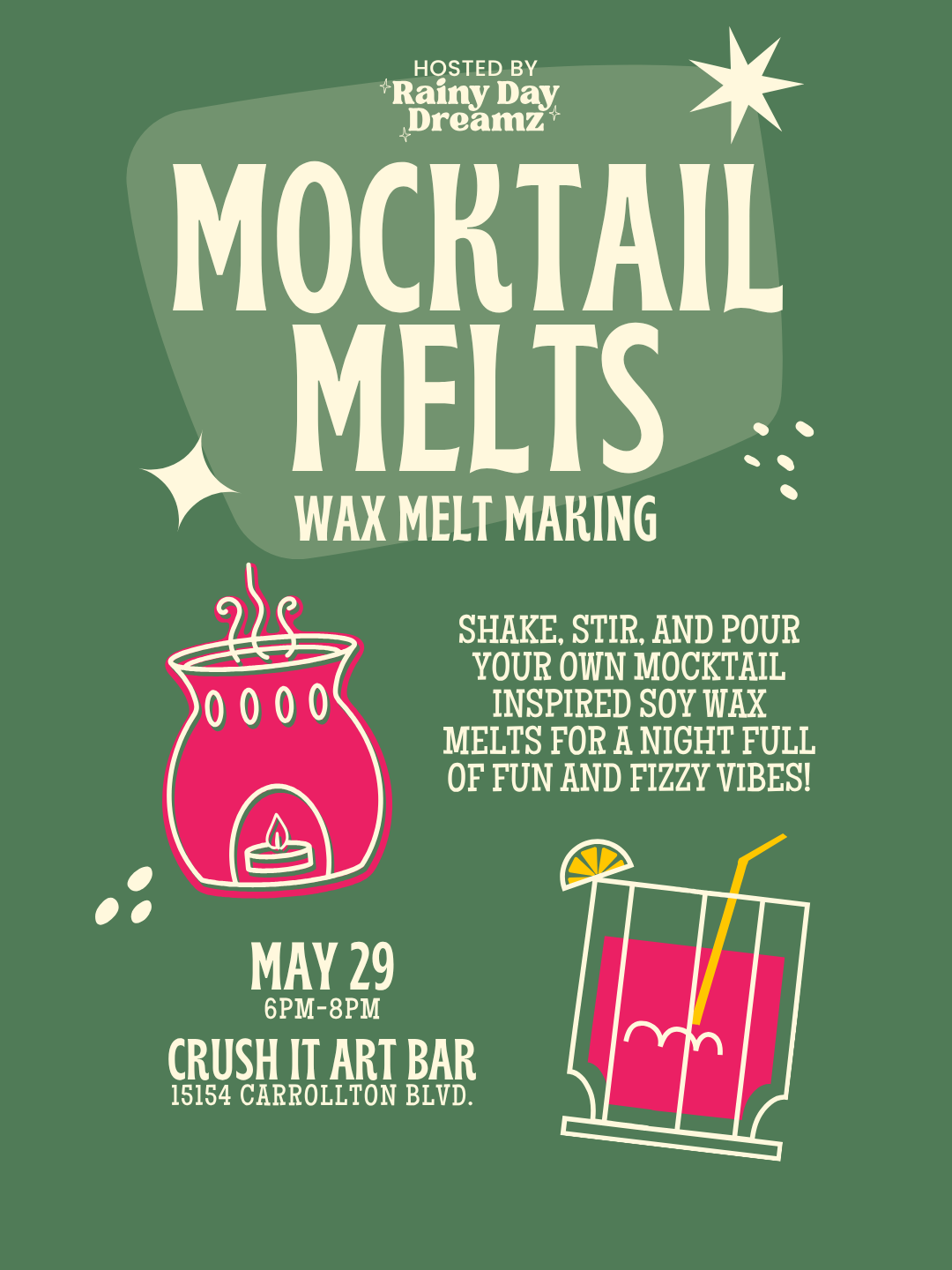Shake, stir, and pour your own mocktail-inspired wax melts for a night full of fruity fun and fizzy vibes!